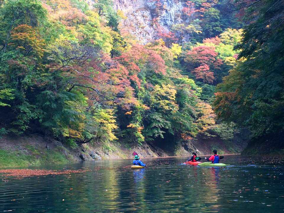 秋の澄んだ空気と紅葉に包まれた秘境の渓谷で、ゆったりとカヤックを楽しみませんか?